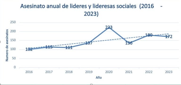 Esta es la tabla de los líderes asesinados desde el 2016 hasta la fecha: