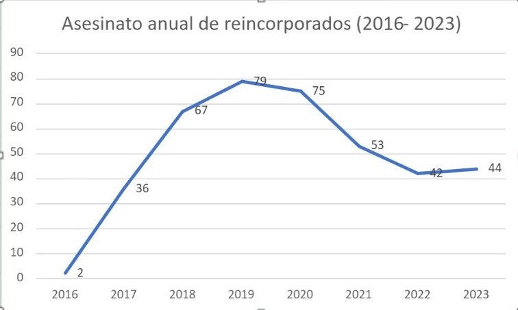 Sin embargo, al primer ex combatiente que asesinaron fue Wrayner Andrés Bayona Blanco, en Tibú Norte de Santander, el 3 de febrero del 2017. Desde entonces han asesinado a más de 400 firmantes. La ONU afirma que han matado a un firmante cada seis días. Las cifras de líderes asesinados en Colombia también son preocupantes. A pesar de que el gobierno Pero tuvo como premisa de campaña parar los asesinatos el año pasados estos llegaron a 188, uno menos que el último año en el que fue presidente Iván Duque.