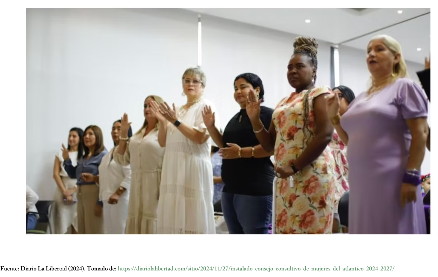 Imagen 1. Marlin Salas (segunda de derecha a izquierda) en la toma de juramento de las representantes del Consejo Consultivo de Mujeres del Atlántico 2024-2027.